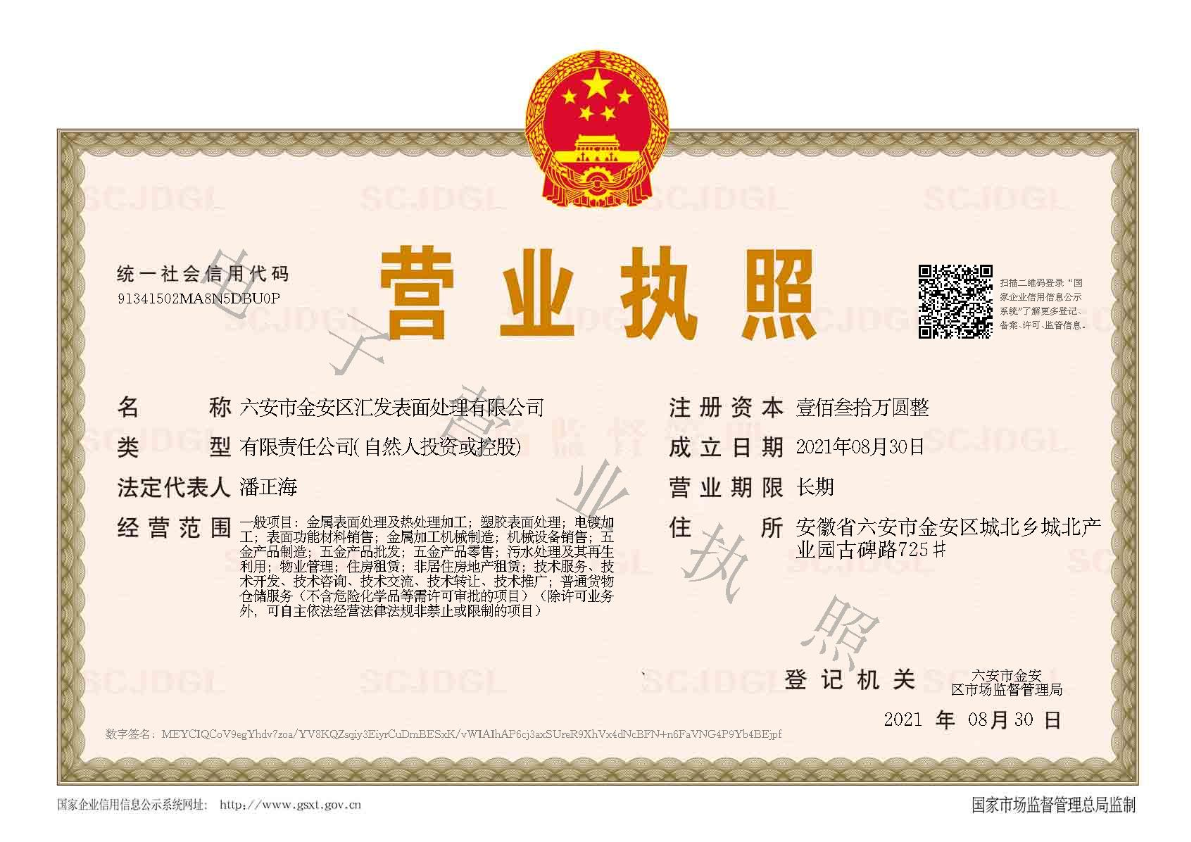 - 六安市金安區(qū)匯發(fā)表面處理有限公司管理的金安表面處理中心項(xiàng)目是經(jīng)區(qū)政府、區(qū)環(huán)保局,在2012年初整合三家電鍍企業(yè),退城入園,聯(lián)合建設(shè),該項(xiàng)目由當(dāng)時(shí)六安市匯發(fā)五金廠(chǎng)、六安市社會(huì)福利輻條廠(chǎng)、六安市金安區(qū)大興五金廠(chǎng)聯(lián)合出資建設(shè),采用股份制,由六安市匯發(fā) 五金廠(chǎng)牽頭負(fù)責(zé)該項(xiàng)目,區(qū)政府協(xié)助,在金安經(jīng)濟(jì)開(kāi)發(fā)區(qū)購(gòu)地65畝,表面處理中心坐落于金安經(jīng)濟(jì)開(kāi)發(fā)區(qū)新北二路與縱一路交叉口處 ,項(xiàng)目預(yù)算投資1億元,全由三家組建...